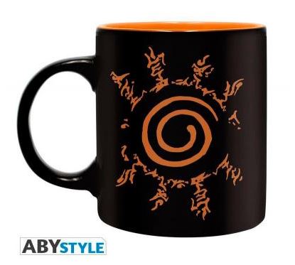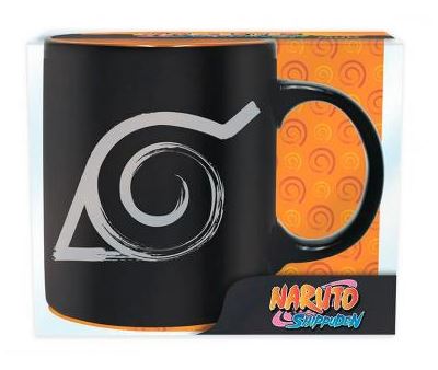 • Una taza para tener un bonito recuerdo del manga anime Naruto. En color negro por fuera y naranja por dentro, donde vemos el símbolo de la aldea Konoha.